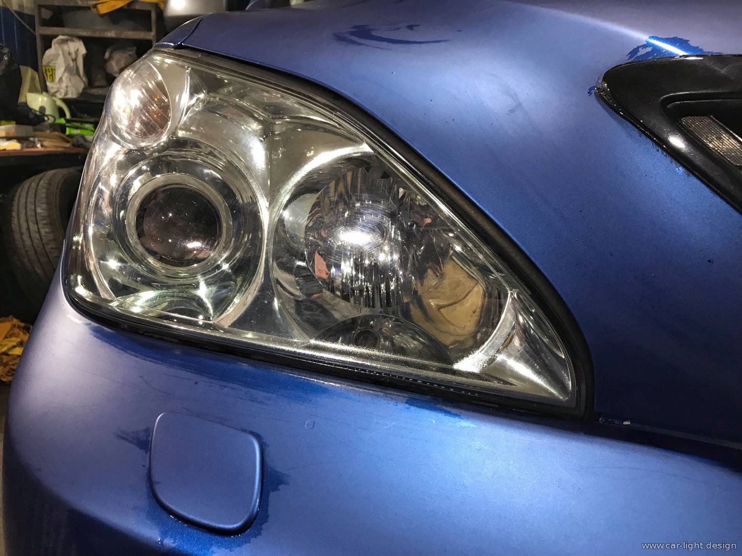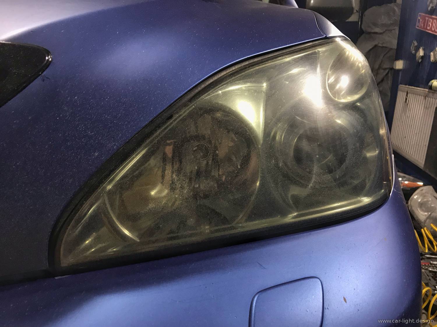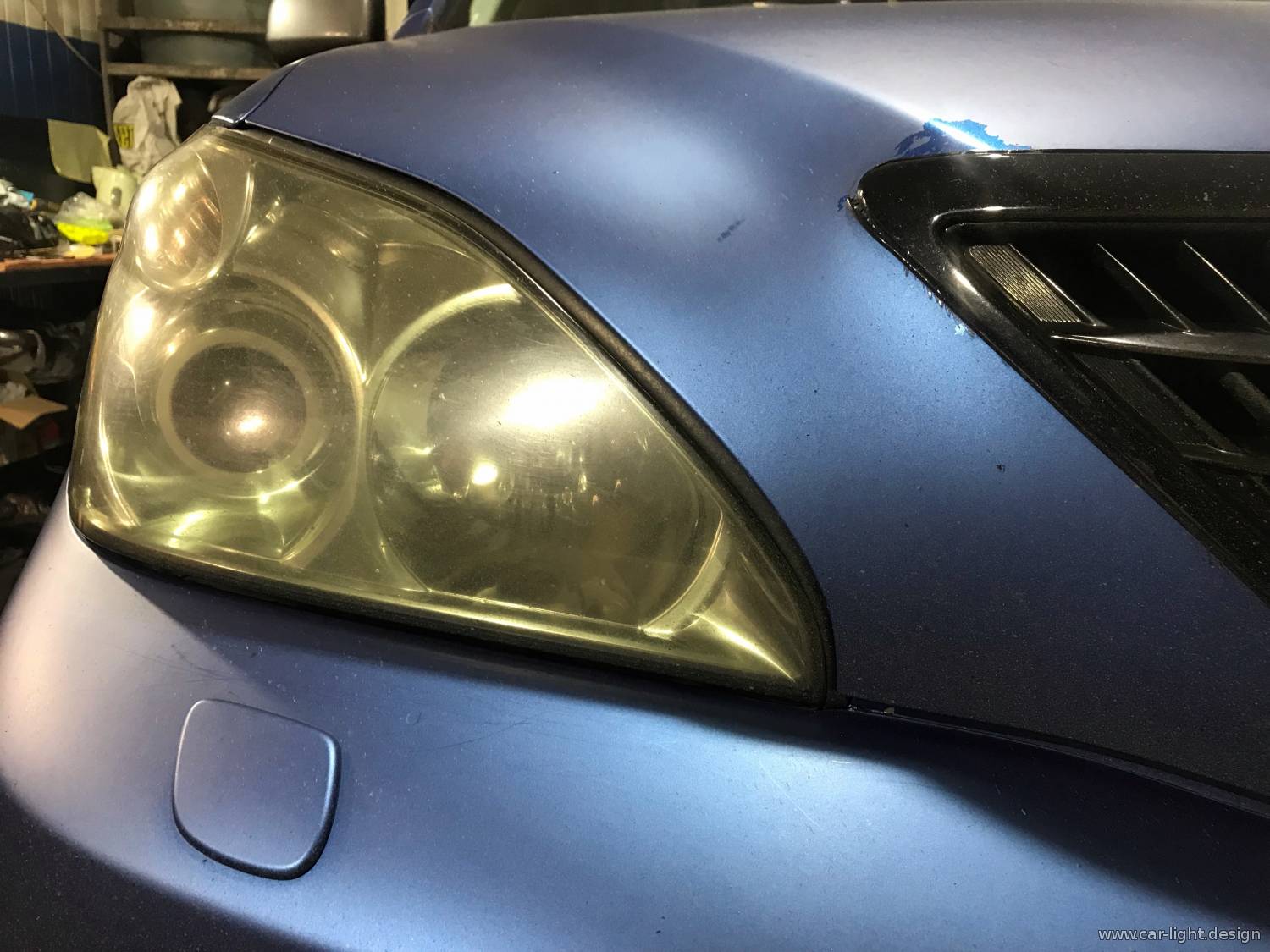 У нас в сервисе автосвета автомобиль Lexus RX400h, у которого головная оптика уже не дает нормального освещения дорожного полотна.