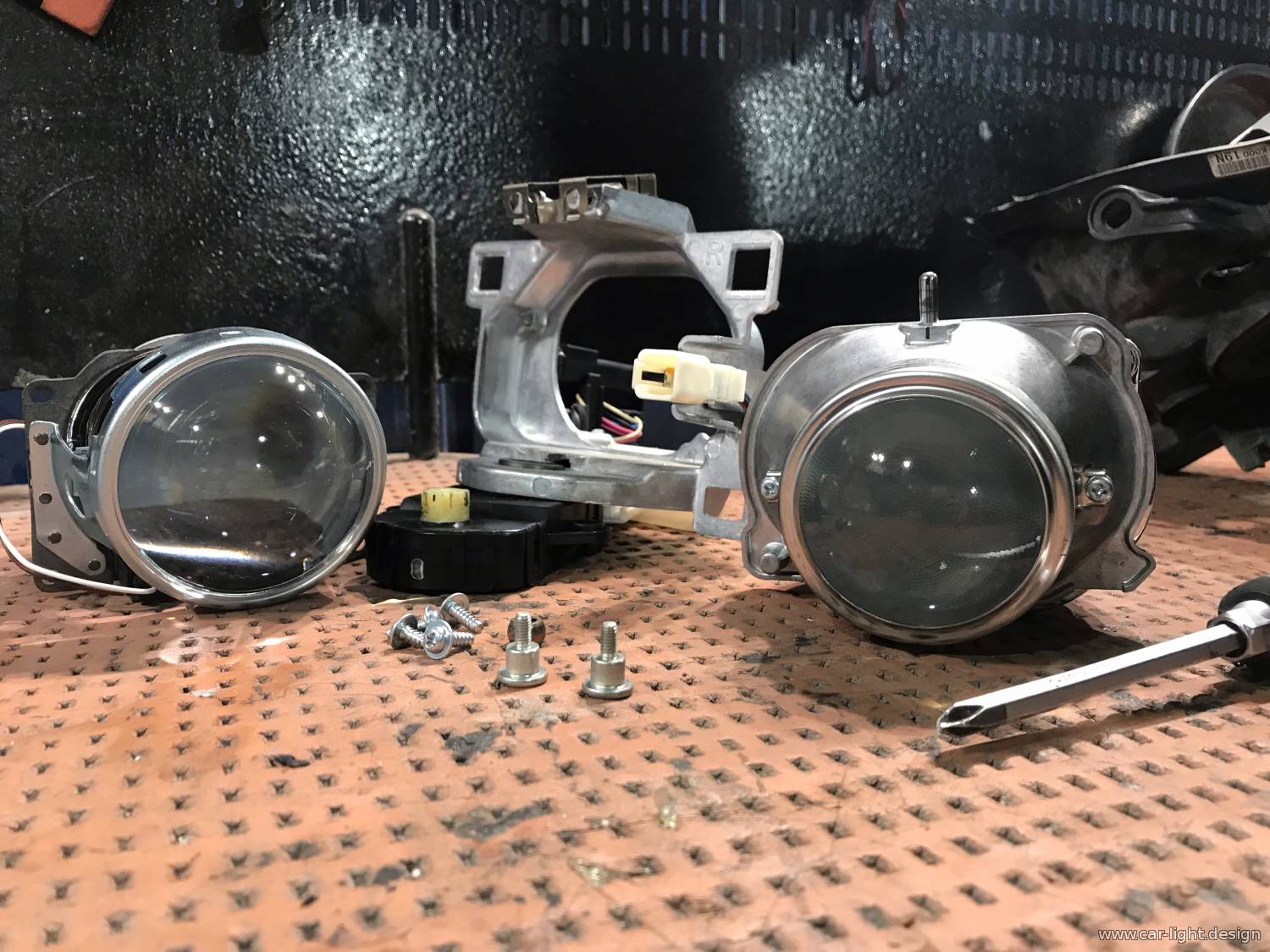Замена штатных линз на биксеноновые линзы 3.0 дюйма в адаптивных фарах Lexus RX400h