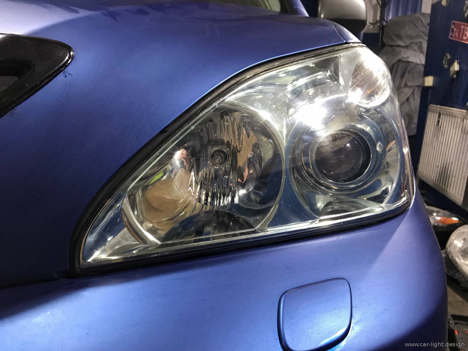 Специалисты сервиса извлекли фары автомобиля и принялись за работу.